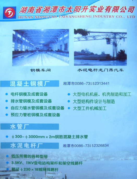 湘潭市太陽升實業有限公司電話:0731-52313441 鄧13907329719 劉13087328409 地址:湖南湘潭市雨湖區南嶺路83號